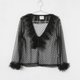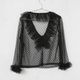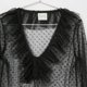:EMPHASIZE领口袖口蕾丝荷叶边小圆点纱质上衣-黑