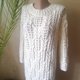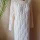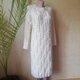 女式白色手工针织羊毛连衣裙。镂空温暖柔软的毛衣连衣裙。
