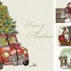 从复古 Mini 小车、麋鹿雪橇,到雪屋旅程与姜饼人派对,每一张都通过插画传递浓厚的圣诞氛围。