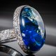 这款独特的手工戒指采用稀有的蓝琥珀,石内自然流淌着细致如银的光芒。在光线映照下,琥珀展现出深邃而神奇的辉光,使每件作品都成为真正独一无二的存在。