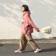 - oddmaker 纸箱狗卡通图案可爱校园风秋冬季粉红色女连帽加绒卫衣