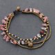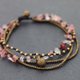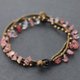 这是手工编织的脚镯,用深棕色棉蜡线编织而成,配以玫瑰石英石,黄铜珠,链子和黄铜叮当铃。关闭使用铜钟