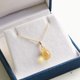 此为使用黄水晶制成的项链坠饰,散发着深邃迷人的橘黄色调。黄水晶是十一月的诞生石。