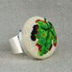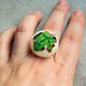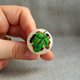 绣有绿叶的手工戒指。 图案是我设计的,也是我绣的。 我在每幅刺绣图片中使用最大数量的颜色,使其更加逼真和丰富多彩。 这款绿色戒指由棉绣线绣在亚麻织物上。 细节: - 圆形为 25x25 毫米(1x1 英寸); - 材质:黄铜环底座、棉、麻; - 戒指是可调节的。