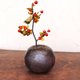 顶部有开口的球形花瓶。泥土的质朴气息与野花相得益彰,可以作为房间装饰。