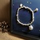 手链是由大小不一样的银粒圈圈组成的