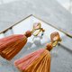 I imagined the beautiful colors of Sunset Beach and combined crystal glass and tassel to create a voluminous earring.