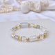 水晶饰品应避免接触香水等化学物,如香水、碱性清洁剂等,**洗澡、游泳、SPA时请取下置于收纳盒中**, 以避免水晶矿石受损及黄铜配饰氧化,此款使用环保黄铜,外层以高温锻压一层真黄金并另加了奈米保色程序,延长保色期限,但抗氧化的程度依体质酸碱不同而有差异。若长时间处于在高温,例如煮饭,金属饰品容易和空气中的二氧化硫结合而产生硫化反应(变黑)。**每次使用后,请擦拭、收纳,保持干燥**,睡前可摘下水晶手链,放在水晶碎石或水晶洞中消磁。