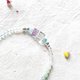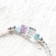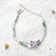 <水晶:白水晶(大方块)约7mm, 紫水晶方块约5mm,透磷灰石叠片约3x2mm, 海蓝宝圆珠约3mm, 白水晶圆珠3mm, 玉石圆珠约4mm, 蝶贝约3咪,