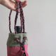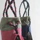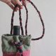 手提肩背两用 | 手编古布+水洗帆布拼接红酒袋 | 春梅红