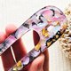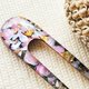 粉红色发叉,背面饰有珍珠母、环氧树脂和木质。 插脚长度 - 140 毫米