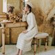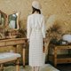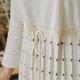 - 精致V领,后领口拉筒套口工艺,防止领口变形拉大,而且能修饰颈部线条又显小脸,腰部抽绳设设计