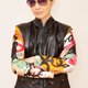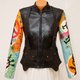 女款真皮休闲夹克,袖口饰有画作,附可拆卸束带与口袋。