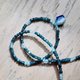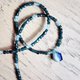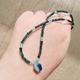 这系列阿富汗石短项链都由我亲手挑选特别吸引我的个体作为主角,其中这颗稍微偏蓝绿的小坠正好深浅色各司一半领域,于是对应他们的色彩选用了同样蓝绿色系名字有点绕口的硅硼镁铝石方珠,浅色的部分则选了颜色较浅的蓝磷灰石做对比,整体都是沁蓝之中带着点绿色隐喻的矿石,在这太长的夏天之中,让森林与湖泊的颜色为你驱散一切烦心吧。
