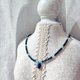 阿富汗石与硅硼镁铝石项链,中央阿富汗石主吊坠尺寸为12x8mm,搭配方形硅硼镁铝石与浅色蓝磷灰石。扣头五金配件均为925银,内部线材为德国制钢丝线。项链目前总长为40cm,可加延长链增长5cm。