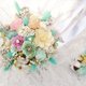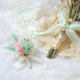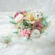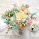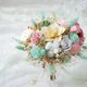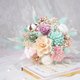 【花材】手工制木片玫瑰、衫玫瑰、日本索拉通草花、兔尾草等,参考如图 Tiffany + 粉红色 + 白色花材。请注意,部分为季节花材,故无法与附图花材一模一样。可来信订制其他颜色捧花。