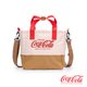 亲近的卡其色配上经典可口可乐经典红色商标