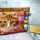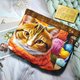 FEN手工小铺-F系列-袋物系列-设计款薄棉布料-毛线猫咪大图款万用袋-化妆包-大小章收纳袋-万用包-收纳袋-预购款