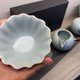 纯手工拉胚,玛瑙入釉,开片均匀,手感温润、呈现清新淡雅的天青色。