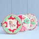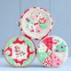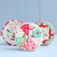 This pattern includes step-by-step photo instructions and full-size pattern pieces to make three round pouches. The panels of the pouches are made from quilt blocks: a «Pinwheel» block, a «Square-in-a-Square» block and a «Dresden Plate» block.