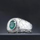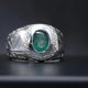 男士祖母绿戒指 祖母绿椭圆形切割戒指 适合中性 સ્યુોટ્ નેચરલ ડીપ ગ્રીન એમરલ્ડ