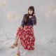 【LADY】荷叶翩翩 桃心A字长裙 松紧带 绯红色