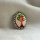 绣有绿树的手工胸针。 图案是我设计的,也是我绣的。 我在每幅刺绣图片中使用最大数量的颜色,使其更加逼真和丰富多彩。 这棵独特的树由棉绣线绣在亚麻织物上。 细节: - 总椭圆为 35x28 毫米(1,4x1,1"); - 图案尺寸为 18x25 毫米 (0,7x1" ); - 材质:黄铜胸针底座、棉、麻;