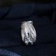 戒指肌理是通过古老传统的墨鱼骨铸造工艺制作,对自然纹路的拓刻。