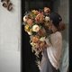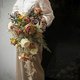 使用温暖木质咖啡色调的当季新鲜花叶材搭配永生叶材,
