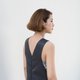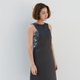 Round neck dress with ink patterned side, deep-V back. Available in two colors white and dark grey.