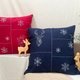 蓝色圣诞亚麻抱枕套 – 手绣刺し子风驯鹿与雪花