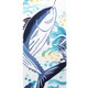Returned bonito is in season in early autumn. A stylish hand towel depicting a dashing bonito pole-and-line fishing with splashing waves.
