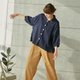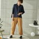 **3/4袖 彼得潘领 上衣 - 海军色**