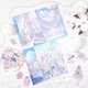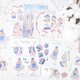 共64张:可裁切纸张。内含:背景纸 (105 x 148mm)、女孩与兔子肖像纸 (90 x 130mm)、大女孩肖像纸 (70 x 120mm)、装饰纸 (150 x 150mm)、边框纸 (90 x 130mm)、蘑菇装饰纸 (100 x 100mm)。