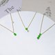 小巧玲珑、翠色迷人的翡翠项链,以精湛的工艺表现出简洁优雅的线条,把一颗颗圆润的翡翠蛋面以古典的K黄金紧密包裹着,细致的光芒映衬出翡翠的温润柔和与内敛含蓄,简约的设计重新演绎经典的翡翠,赋予翡翠年轻的新样貌,将项链配戴于颈间,洋溢初春盎然的气息,带来圆满永久的幸福寓意。