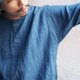 使用柔软的亚麻布料,设计是简约的pull over(从头套上去穿着)