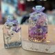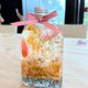 材料包内容:永生花花材、干燥花花材、碎玻璃、英文字母、浮游花瓶、矿物油、说明书。
