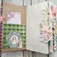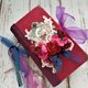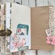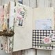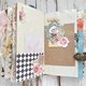 White rabbot journal contains: tea dyed paper, archival papers, lace, charms, fabric cover
