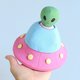 关于飞碟。外星飞船填充有中等重量的羊毛,完美地保持其形状。圆顶背面有一个按扣,因此可以轻松地将娃娃放入其中。