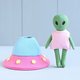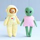 一起购买图案可节省!这组图案包括逐步照片说明和全尺寸图案块,可用于制作迷你外星人娃娃和飞碟 (UFO)。