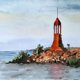 灯塔画原创水彩画海景艺术