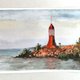 灯塔画原创水彩画海景艺术 这是一幅真正的棉纸水彩画,而不是印刷品。 图片未加框,照片显示了设计范例。 纸张尺寸为 4 x 6 英寸(10 x 15 厘米)。 这幅画已准备好发货。 我建议将其框架放在玻璃下,并远离阳光直射和潮湿。