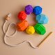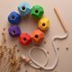 儿童木制自然经典教育学习玩具的元素被涂成彩虹的主要颜色,因此对于年龄较大的孩子,您可以开始学习和记住彩虹的主要颜色。很快,孩子自己不仅能把木制彩虹石串在绳子上,还能说出它们所有的颜色——红、橙、黄、绿、蓝、蓝和紫色。