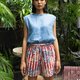 Drawstring Shorts, Side Binding Decoration, Cotton Linen Prints, Vintage style