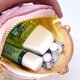 外型和触感皆与真的桃子十分相似的票卡零钱包(牛革制)。