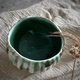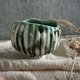 茶碗外缘以深浅浓淡的翠绿覆盖,