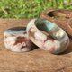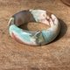 镯心也很精彩喔!同样带色带花,5.6 x 5.6 x 2.4 cm,约150g,厚实的镯心可放书桌当纸镇、珠宝盒当装饰、盆栽当装饰,或是放在小灯上面当夜灯装饰。