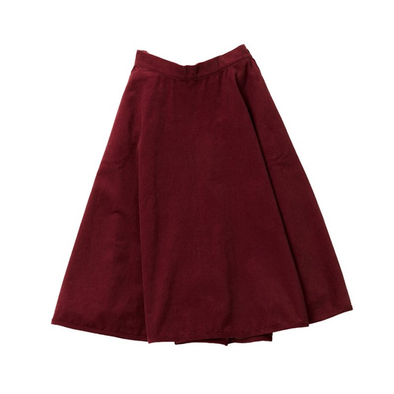 SYNDROme 的复古中长圆裙 "Tom's Summer" 灵感来自于电影【恋夏五百日】女主角 Summer 的大圆裙,在 2017 秋冬以酒红灯芯绒呈现,可与上身 "Terra" Jacket 成套搭配。
