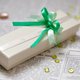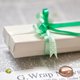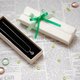 B. 清丽风:使用白色凸纹长方扁盒(规格约为155 X 47 X 25 mm,白色凸纹长方扁盒,内有黑色绒质垫衬。)绿、白配上薄荷绿小白圆点缎带蝴蝶结。