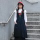 - Vintage 黑底绿滚边可拆式绒布奥地利洋装